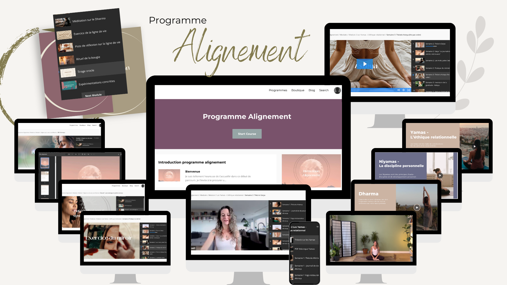 - ✔ Un PDF clair et inspirant pour chaque module (contenu théorique et réflexions).